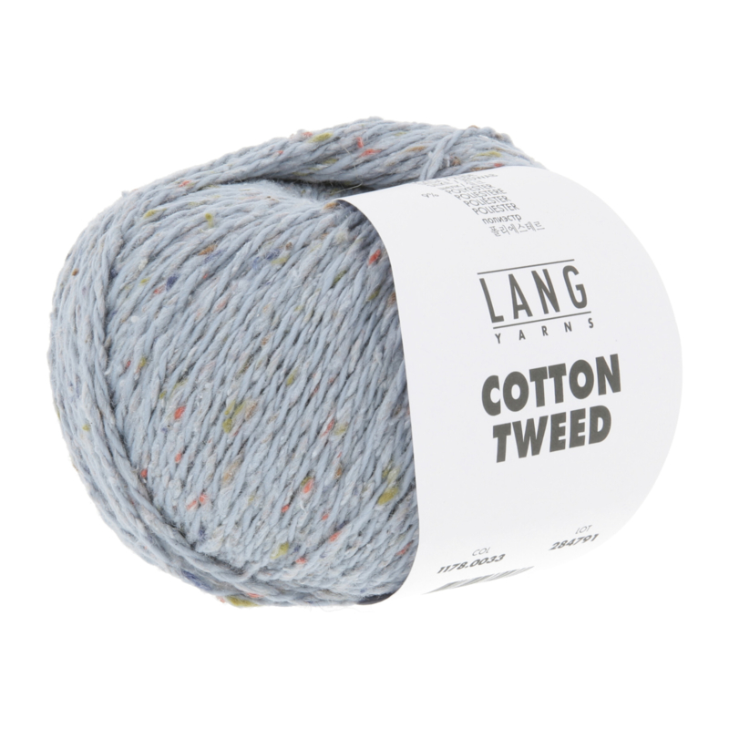 OverzichtCotton Tweed van Lang Yarns combineert het beste van twee werelden: een boterzachte touch en een rustieke tweedlook, speciaal ontwikkeld voor zomerse projecten. Het garen bestaat uit twee in elkaar gedraaide draden: een effen katoenen basisdraad en een draad met kleurrijke zijden tweed-dots. Dit zorgt voor een speelse, levendige structuur zonder dat het grof aanvoelt.