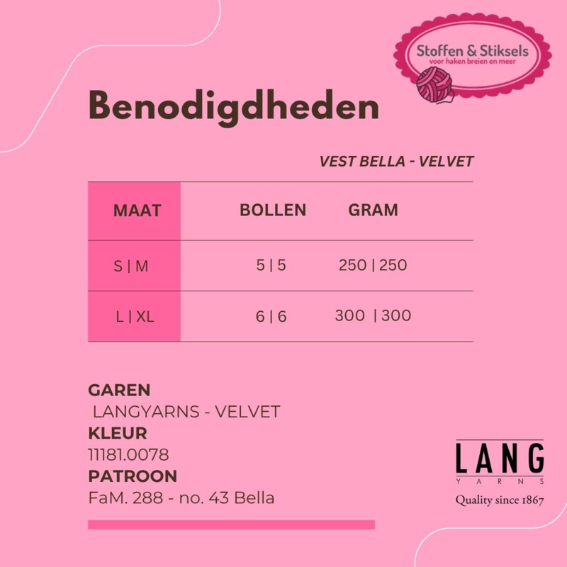- 5 / 6 bollen Velvet van LANGyarns in een kleur naar keuze (KLIK HIER)