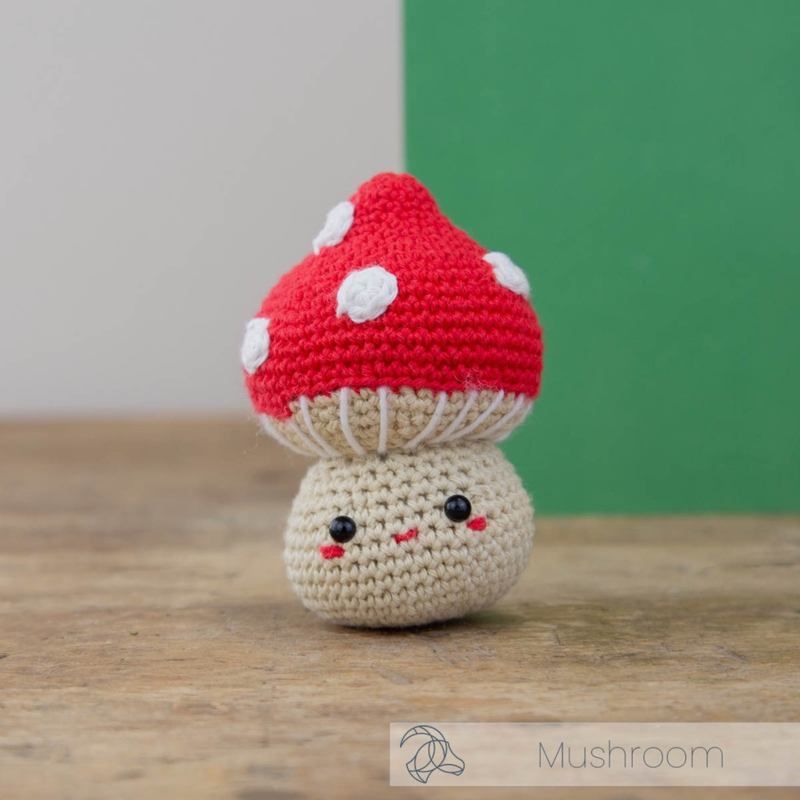 Haakpakket - PaddenstoelDe herfst laat zich zien en de eerste paddenstoelen groeien in het bos. Help jij deze tot leven komen? Samen met het Eikeltje maak je je set compleet.